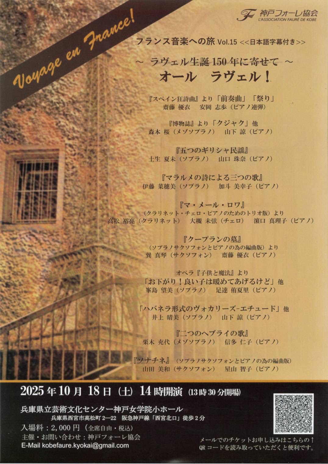 オール ラヴェル! フランス音楽への旅 ~ラヴェル生誕150年に寄せて~ 兵庫県立芸術文化センター神戸女学院小ホール