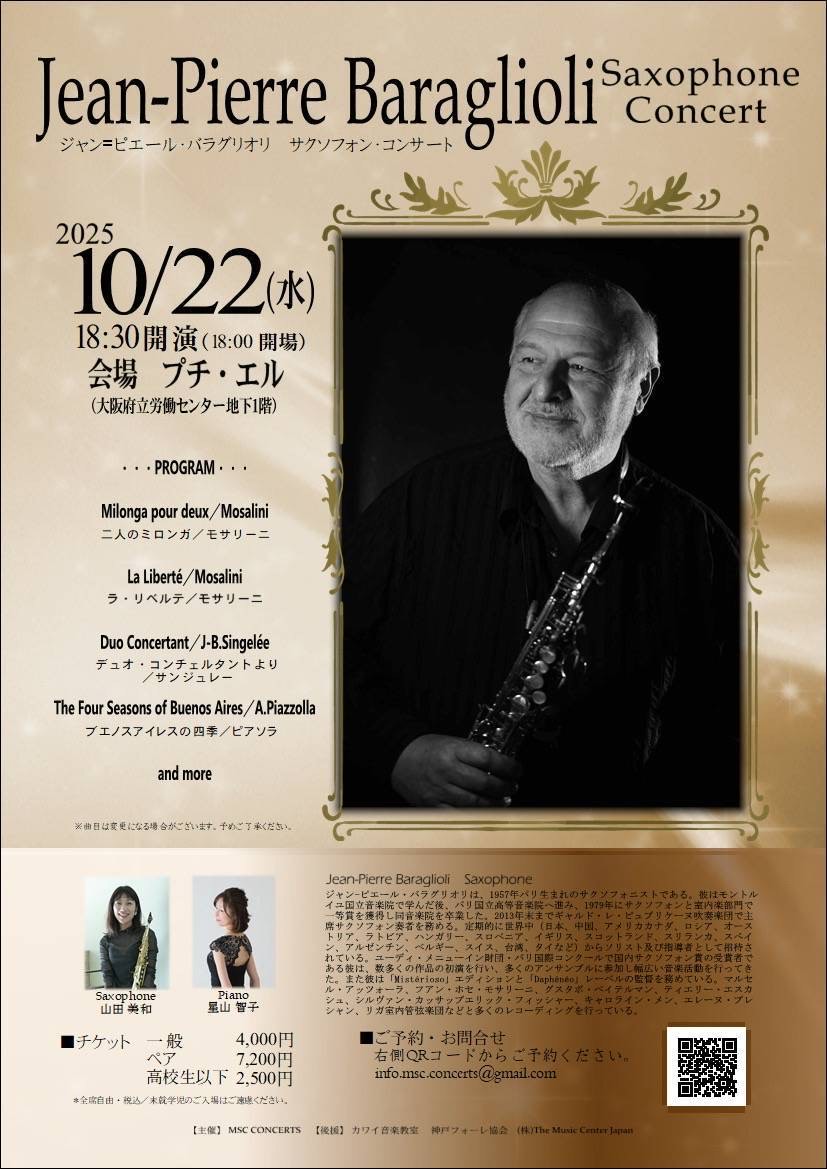 ジャン=ピエール・バラグリオリ(サクソフォン)・山田美和(サクソフォン)・星山智子(ピアノ)